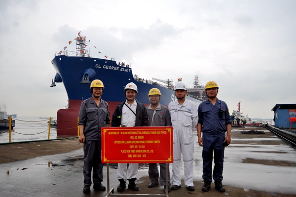 7月19日,公司1#塢迎來船舶下水盛事,4#120000噸散貨船、34#50000噸Ⅱ類化學(xué)品船分別在拖輪的牽引下駛離船塢,?恐链棒秆b碼頭,大節(jié)點(diǎn)目標(biāo)順利實(shí)現(xiàn)。