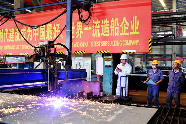 6月23日,公司在東區(qū)鋼加車間舉行船舶點火開工儀式,54#156500噸油船船體零部件正式開始切割預(yù)制。