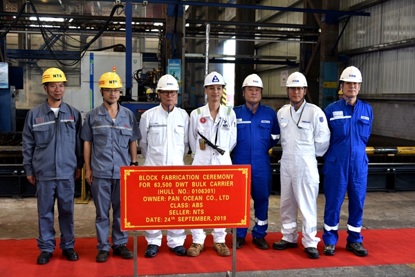 韓國船東Pan Ocean Co., Ltd.在我們企業(yè)共訂制了3艘63500噸散貨船,今天交的是該系列船舶的第一艘。