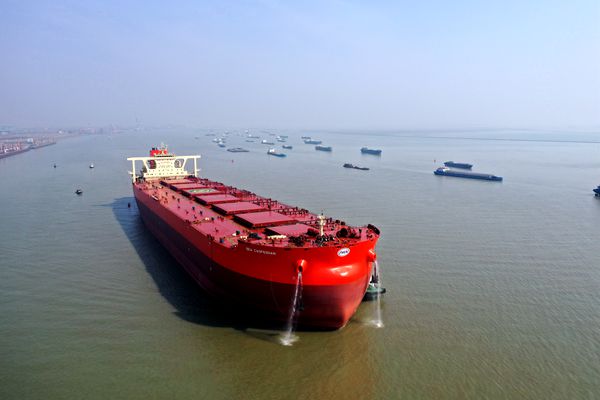交船進(jìn)行時(shí):6#325000噸超大型礦砂船簽字交付(圖)