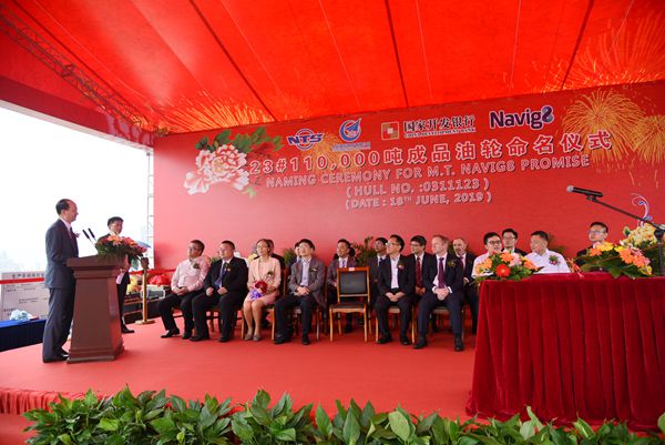 6月18日,公司舉行隆重儀式,為新建船舶23#110000噸油船命名。公司領(lǐng)導劉海金、張玉永、徐震宇、袁衡與船東代表、船級社代表等嘉賓一起出席儀式,共同見證新建成功命名。19日下午,公司常務副總張玉永與該船船東代表共同簽署交船文件,23#110000噸油船正式交付。