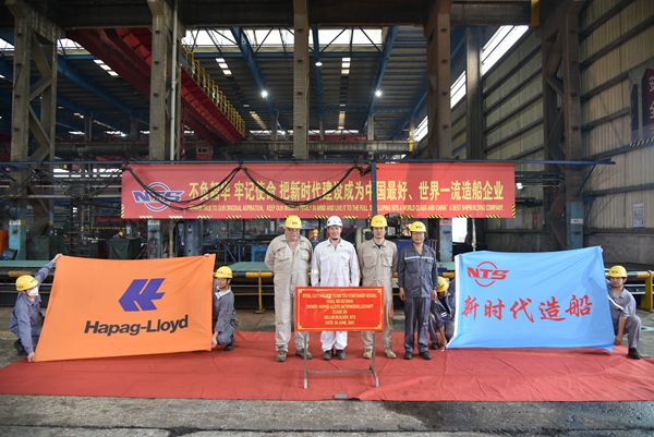6月30日上午,公司在鋼加車間東區(qū)一跨舉行船舶點火開工儀式,4#13000箱集裝箱船船體結構件開始切割預制。公司生產(chǎn)管理負責人陳月鋒與船東Hapag-Lloyd公司代表出席活動。