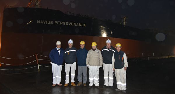 1月10日傍晚5時(shí)許,21#22#111000噸成品油船下水工作正式啟動,在下水指揮人員、海事編隊(duì)拖輪工作人員、帶纜員工的通力協(xié)作下,兩艘船舶相繼緩緩駛出大塢,順利實(shí)現(xiàn)下水大節(jié)點(diǎn)。公司領(lǐng)導(dǎo)張玉永、丁柏英、徐震宇與船東代表、船級社代表在現(xiàn)場共同見證了船舶下水全過程。