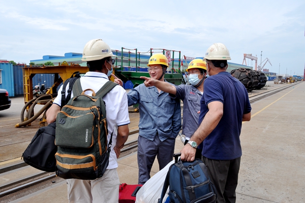 公司總經(jīng)理劉海金,常務(wù)副總經(jīng)理張玉永、總經(jīng)理助理徐震宇及各相關(guān)部門(mén)負(fù)責(zé)人一起到東區(qū)碼頭迎接試航團(tuán)隊(duì),向同志們道一聲“辛苦了”。