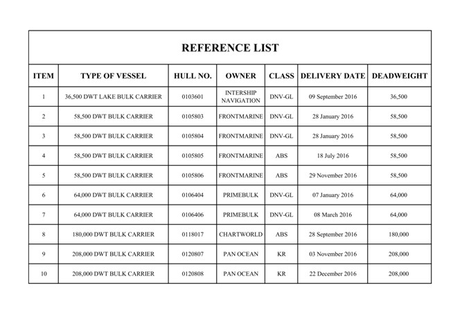 REFENCE LIST 2016