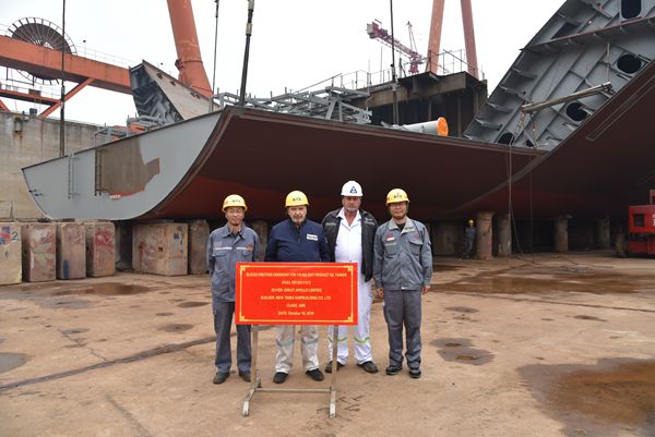 On October 16, the block erection for No.21 & No.22 111,000 DWT Oil Tankers was carried out successfully at NTS drydock. Our Assistant General Manager Mr. Ding Baiying and the representatives from the owner and the classification society attended this event.