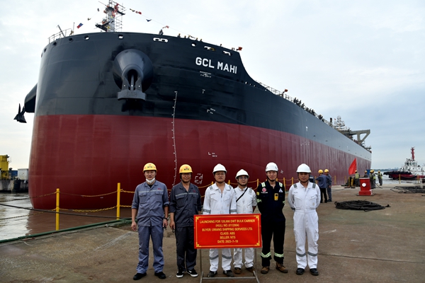 7月19日,公司1#塢迎來船舶下水盛事,4#120000噸散貨船、34#50000噸Ⅱ類化學(xué)品船分別在拖輪的牽引下駛離船塢,?恐链棒秆b碼頭,大節(jié)點(diǎn)目標(biāo)順利實(shí)現(xiàn)。