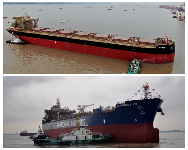 4#120000噸散貨船、34#50000噸Ⅱ類化學(xué)品船順利下水