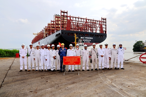 8月7日、8日,公司2#塢、3塢區(qū)域,船舶下水各項(xiàng)工作有序進(jìn)行,2#3#4#11400箱LNG雙燃料動(dòng)力集裝箱船在海事拖輪的牽引下,先后駛出船塢,如期實(shí)現(xiàn)下水大節(jié)點(diǎn)目標(biāo)。