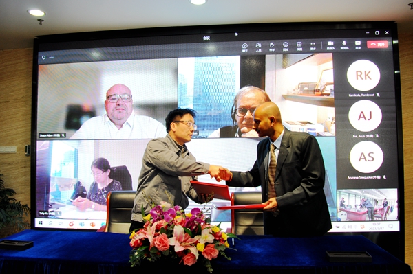 3月27日上午,公司在辦公樓會議室舉行船舶簽字交付儀式,常務副總經(jīng)理張玉永與英國船東ARCELOR MITTAL SHIPPING LIMITED代表Debdutta  Barman共同簽署交船文本,2#120000噸散貨船交付船東運營。