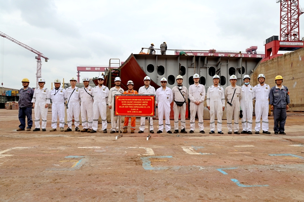 6月23日上午,公司在3#塢區(qū)域舉行船舶進(jìn)塢合攏儀式,5#6#8100箱LNG雙燃料動力集裝箱船船體分段開始進(jìn)塢搭載建造。