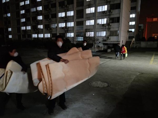數(shù)十輛大客車,經(jīng)過安檢消殺,并明確專業(yè)人員隨車,前往各地,迎接員工,并送上口罩和防疫宣傳資料。返廠后,企業(yè)給大家送上了貼心服務(wù),提供了安全舒適的隔離宿舍,分發(fā)了生活用品,又給他們送上了熱氣騰騰的飯菜,讓他們安心生活,準(zhǔn)備復(fù)工。
