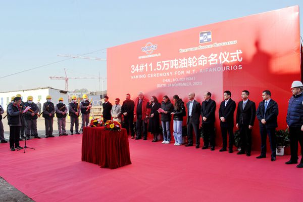 11月24日,公司先后舉行船舶命名與交付儀式,34#115000噸油船被命名為“AIFANOURIOS”號(hào),并成功交付希臘船東Chartworld公司運(yùn)營(yíng)。