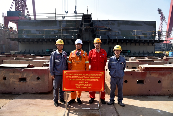 4月29日上午,公司在西區(qū)1#塢舉行船舶進(jìn)塢合攏儀式,58#50000噸Ⅱ類化學(xué)品船、56#115000噸油船船體結(jié)構(gòu)分段開始搭載建造。