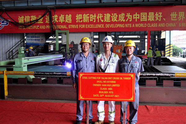8月20日上午9:00,公司在鋼加車間舉行56#156500噸油船開工點火儀式,該船船體零部件開始切割預(yù)制。56#156500噸油船總長274.3米,型寬48米,型深23.2米,設(shè)計吃水16米,結(jié)構(gòu)吃水17.15米,載重156500噸,入ABS船級社,船東是希臘Seaworld公司。