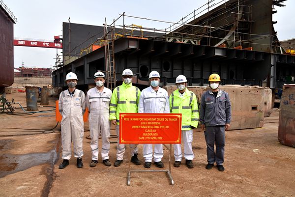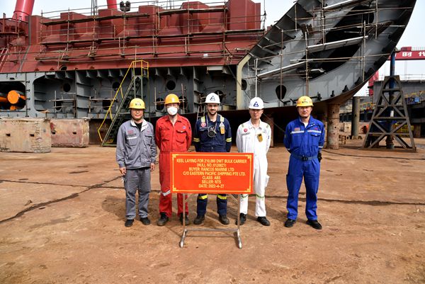 上午9:00,公司新區(qū)船塢區(qū)域內(nèi)迎來27#210000噸散貨船、34#156500噸油船船體進(jìn)塢合攏儀式。生產(chǎn)管理部、營(yíng)銷部、質(zhì)量部等部門負(fù)責(zé)人與船東新加坡公司Eastern Pacific Shipping Pte. Ltd.(EPS)、船東新加坡船東Singfar國(guó)際公司代表分別見證兩艘船舶合攏搭載。