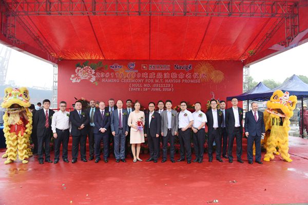 6月18日,公司舉行隆重儀式,為新建船舶23#110000噸油船命名。公司領(lǐng)導劉海金、張玉永、徐震宇、袁衡與船東代表、船級社代表等嘉賓一起出席儀式,共同見證新建成功命名。19日下午,公司常務副總張玉永與該船船東代表共同簽署交船文件,23#110000噸油船正式交付。