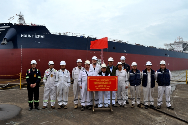 公司領(lǐng)導(dǎo)與船東喜馬拉雅公司代表一起在現(xiàn)場見證船舶下水。喜馬拉雅公司在我們企業(yè)訂有12艘210000噸雙燃料動力散貨船,此次下水的是210000噸雙燃料動力散貨船系列中的第11艘和第12艘船舶。