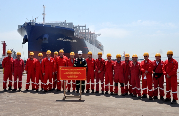 6#7000箱集裝箱船、50#210000噸雙燃料動(dòng)力散貨船同屬船東EPS公司,該公司目前在我們企業(yè)訂制了4艘110000噸油船、11艘210000噸雙燃料動(dòng)力散貨船、7艘7000箱集裝箱船、6艘50000噸化學(xué)品船和2艘155500噸雙燃料動(dòng)力油船,此次出塢下水的分別是7000箱集裝箱船、210000噸雙燃料動(dòng)力散貨船系列船中的第6、11艘船舶。