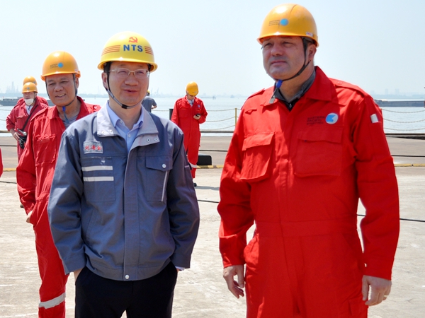 5月17日中午,新區(qū)3#塢區(qū)域,船舶下水工作正式啟動(dòng),6#7000箱集裝箱船、50#210000噸雙燃料動(dòng)力散貨船相繼在拖輪的牽引下駛出船塢,?恐链棒秆b碼頭,開(kāi)始下一步的舾裝調(diào)試工作。