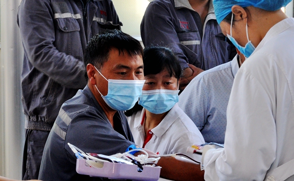 獻(xiàn)血獻(xiàn)愛心 血濃情更濃。9月30日上午,氣氛熱烈的職工義務(wù)獻(xiàn)血活動在公司新區(qū)第一食堂開展,來自公司各個(gè)部門的干部職工踴躍加入義務(wù)獻(xiàn)血行列,210人成功獻(xiàn)血62300ml,為靖江市臨床用血奉獻(xiàn)一份愛心,在國慶節(jié)來臨之際,為祖國母親獻(xiàn)上了一份溫暖而厚實(shí)的禮物。
