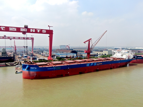 210000噸雙燃料動力散貨船總長299.95米,兩柱間長294.75米、型寬50.00米,型深25.20米,設(shè)計吃水18.40米,結(jié)構(gòu)吃水18.48米,載重噸210000MT。船東Eastern Pacific Shipping Pte. Ltd.(EPS)目前在我們企業(yè)訂制了4艘110000噸油船、11艘210000噸雙燃料動力散貨船、7艘7000箱集裝箱船和6艘50000噸化學(xué)品船,此次交付的是210000噸雙燃料動力散貨船系列中的第7艘船舶。