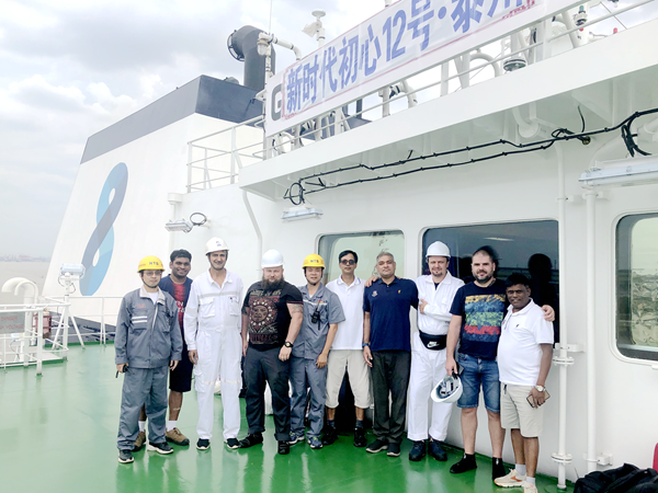 公司總經(jīng)理劉海金,常務(wù)副總經(jīng)理張玉永、總經(jīng)理助理徐震宇及各相關(guān)部門(mén)負(fù)責(zé)人一起到東區(qū)碼頭迎接試航團(tuán)隊(duì),向同志們道一聲“辛苦了”。