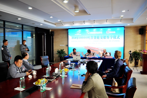 35#210000噸雙燃料動(dòng)力散貨船簽字交付
